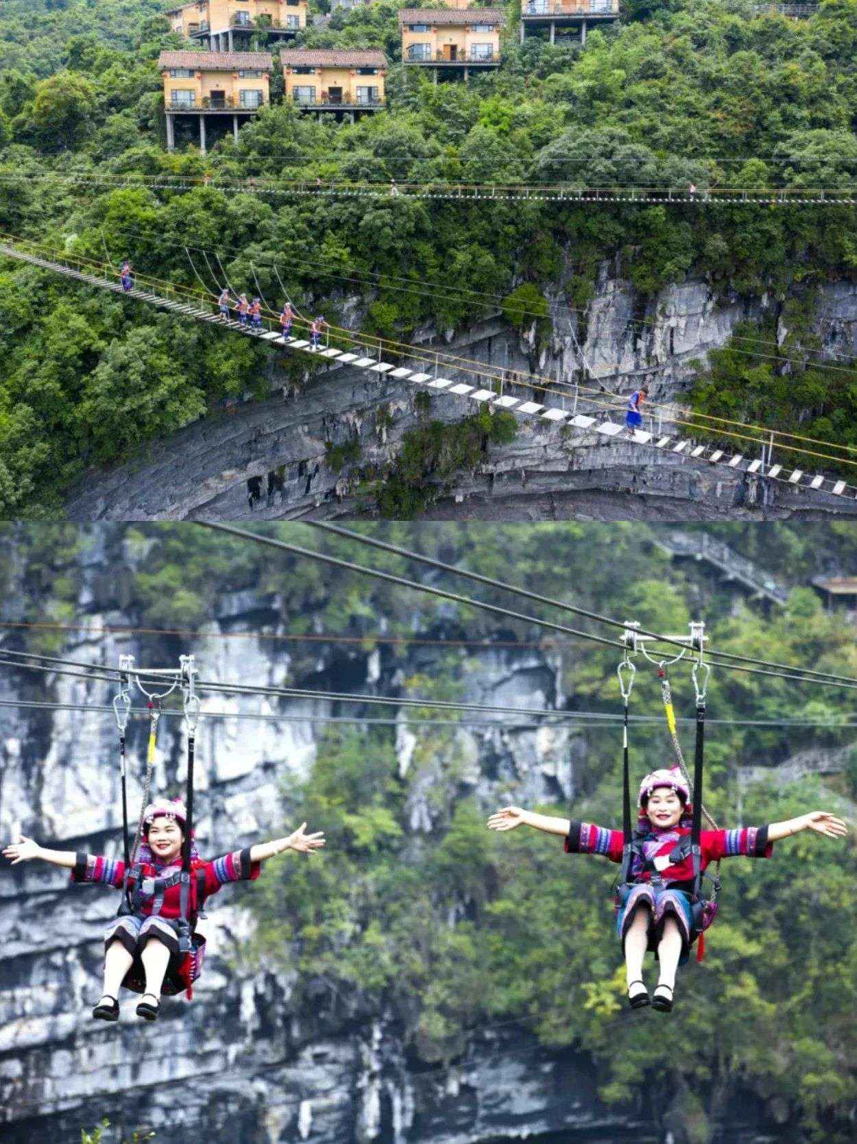 自然与人文的共生理念,悬崖书店选址于天坑空谷的悬崖秘境,将阅读场景融入喀斯特地貌的奇观中。游客在此可感受"脚下是神秘的地心世界,心中是“诗与远方”的意境。(广西文化和旅游厅微信公众号)