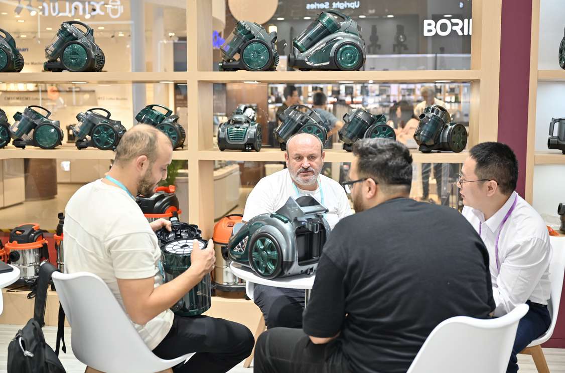图为吸尘器吸引采购商咨询洽谈。(图/中新社)