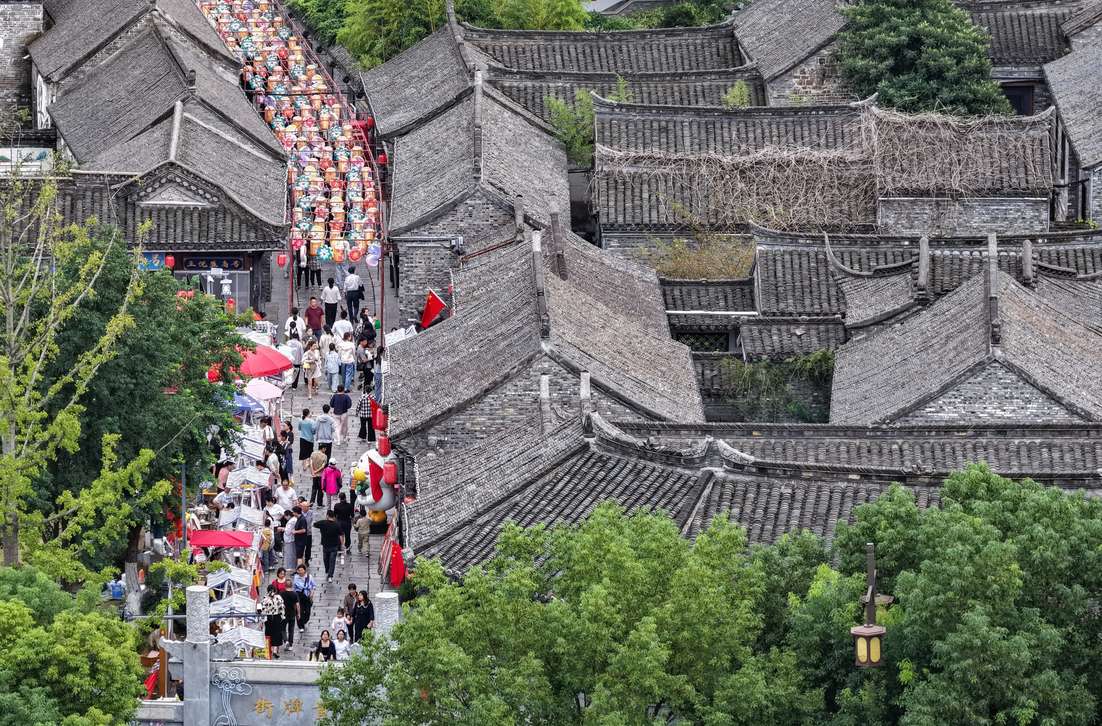 10月1日,江苏淮安,民众走进盱眙县第一山历史文化街区品“文化大集”。(图/中新社)