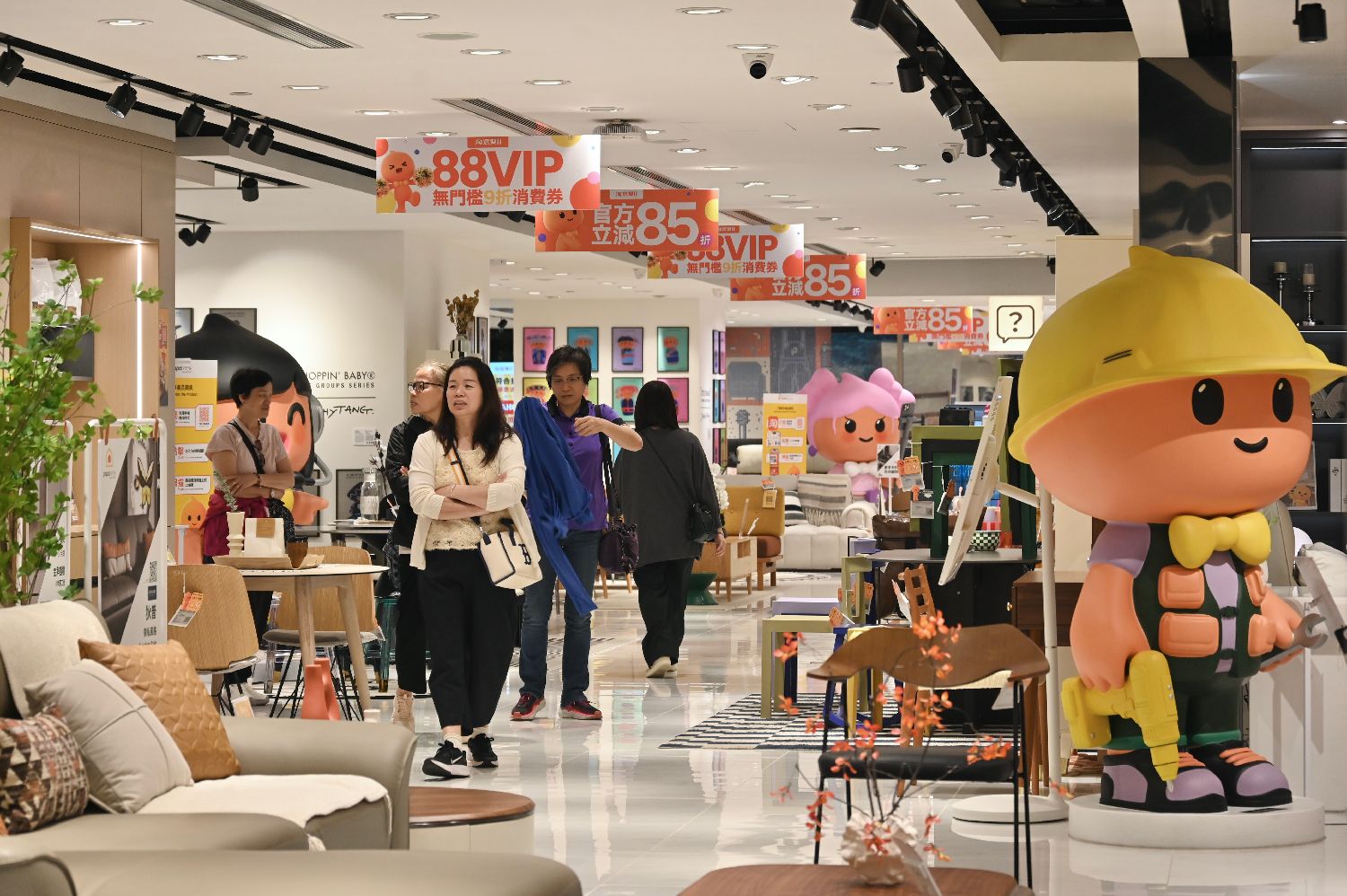 11月11日,有商家在香港推出“双十一”折扣优惠,吸引民众前来消费。图为民众在中国内地一家电商平台的香港门店里购物。(图/中新社)
