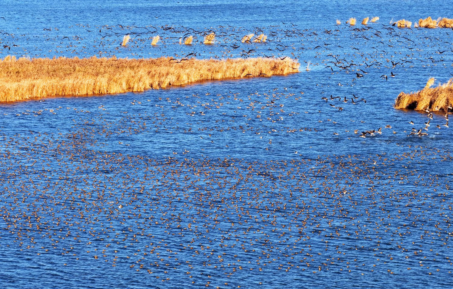 “京津冀最美湿地”衡水湖数万只候鸟齐飞形成“鸟浪”奇观,“观鸟游”热度近期持续升温。