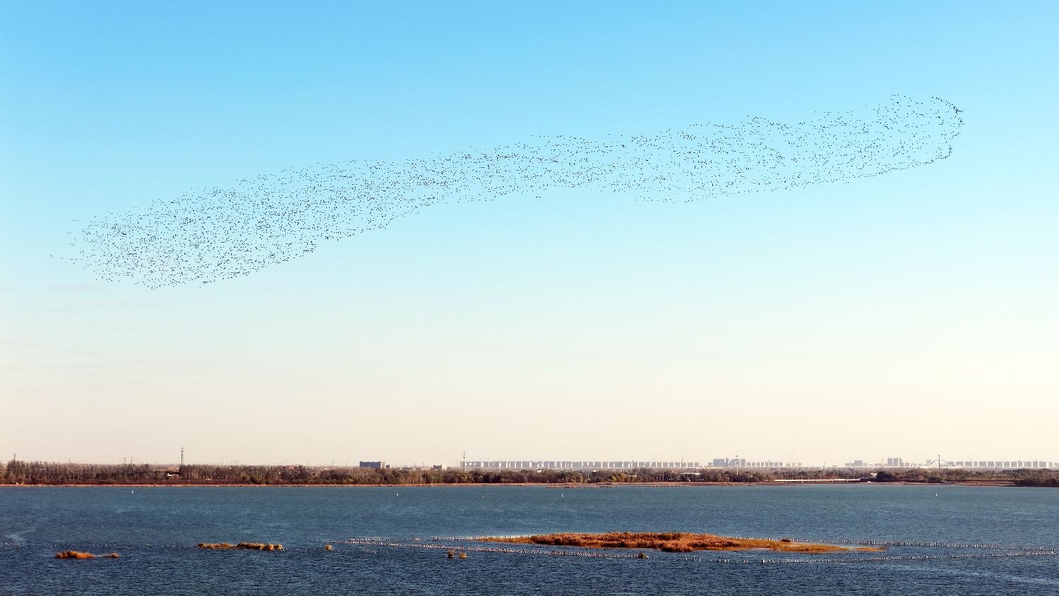 “这几天正是候鸟迁徙高峰,每天清晨和傍晚,这样的‘鸟浪’奇观都会准时出现。”19日,河北衡水滨湖新区资源保护局副局长张余广手持望远镜,正在记录候鸟种类。