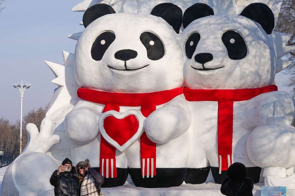 1月3日,黑龙江哈尔滨,第38届太阳岛国际雪雕艺术博览会迎来大批参观者。(图/中新社)
