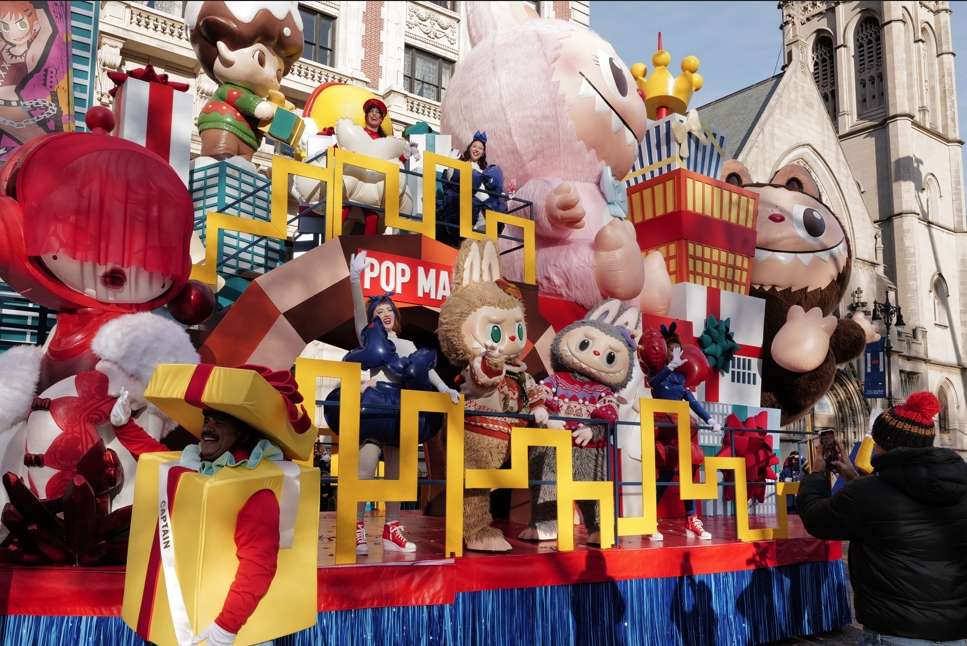 当地时间11月27日,第99届梅西百货感恩节大游行在美国纽约举行。图为风靡全球的LABUBU首次亮相纽约感恩节大游行。(图/中新社)