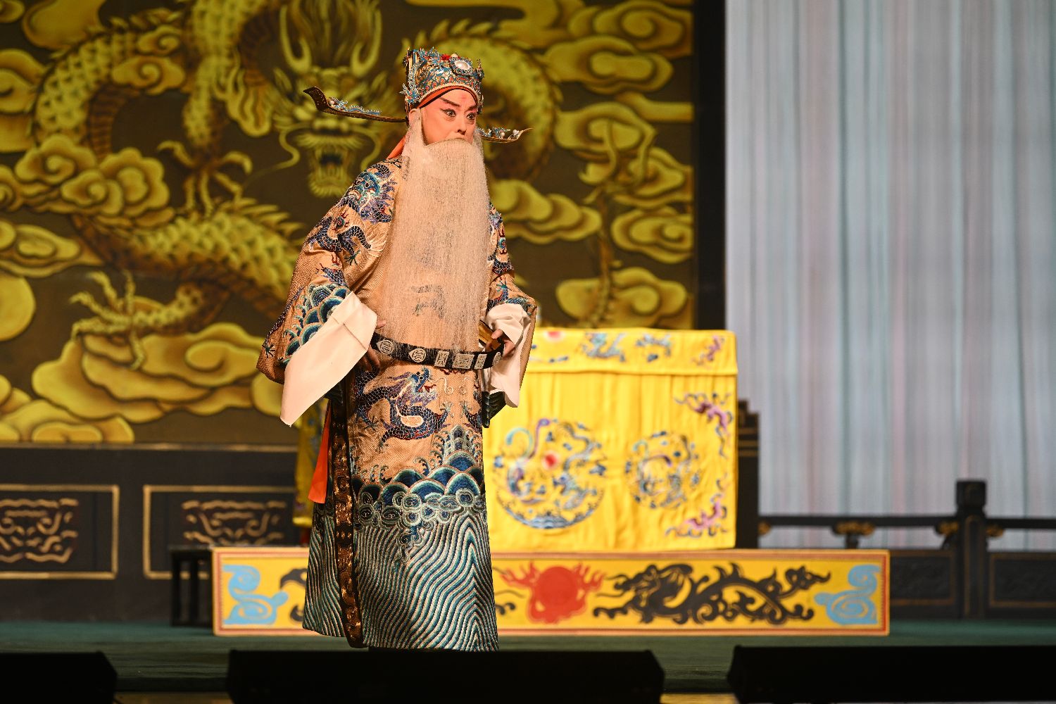 当地时间1月11日晚,在合肥大剧院,著名京剧表演艺术家于魁智演绎《穆桂英挂帅》剧目。(图/中新社)