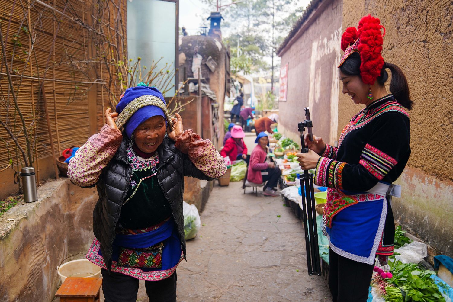 1月11日,期丽在家乡昆明乐居村拍摄村民的生活。(图/中新社)