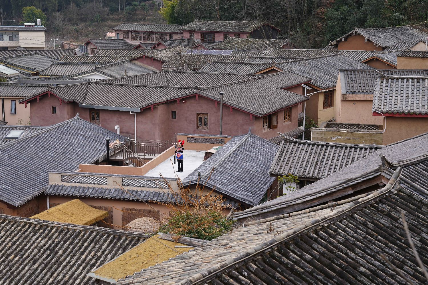 她的直播间背景正是坐落于昆明市西北郊凤凰山麓的乐居村。这是一座拥有600多年历史的彝族古村落,共有217户、985人,彝、白、汉、苗等多民族共居,80余栋“一颗印”汉彝合璧古建筑错落有致,土墙青瓦,古韵悠然。