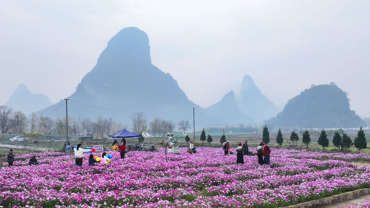 在广西桂林市临桂区会仙镇沐宦头村,冬闲田“走”出一条“花田增收路”。200亩闲置田化作绚烂的格桑花海,成为乡村游新晋“打卡地”。田埂间游人如织,尽享田园惬意。