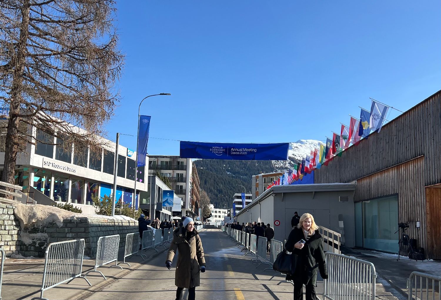 当地时间1月19日,世界经济论坛2026年年会将在瑞士东部小镇达沃斯拉开帷幕。本届年会聚焦“对话的精神”主题,汇聚了来自全球130多个国家和地区的近3000名各界参会者。图为参会代表经过悬挂旗帜的会议中心。(图/中新社)