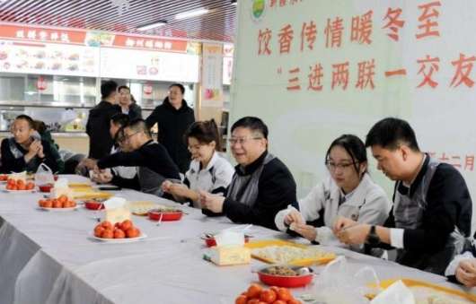 2025年冬至,新疆农业大学党委书记谢树青(图中)来到学校石榴园餐厅,与学生们一起包饺子。(图/新疆农业大学)