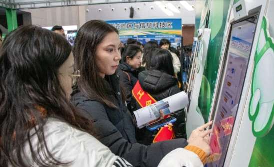 2026年3月13日,新疆2026年高校毕业生春季招聘大会在乌鲁木齐举行。图为求职大学生使用AI匹配岗位。(图/中新社)