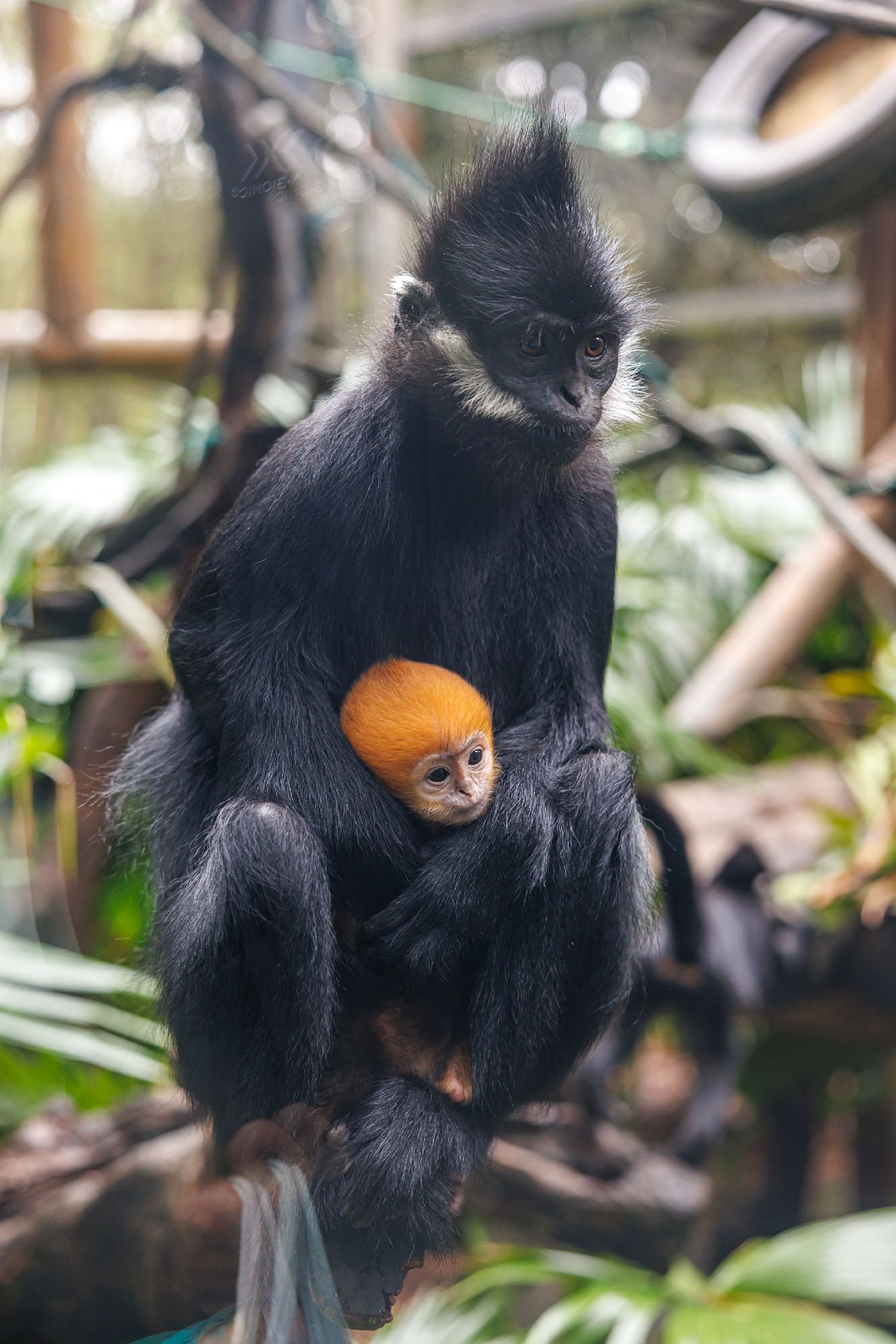 据悉,广州长隆野生动物世界共保育有56种灵长类动物,是全球种类最多的灵长类保育基地之一。其中,保育21只黑叶猴,曾成功繁育世界首例黑叶猴龙凤胎。