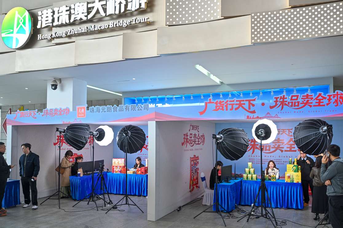 资料图为2月8日,广东珠海,“广货行天下·珠品卖全球”一桥三地珠海智造(港珠澳大桥专场)活动在港珠澳大桥珠海公路口岸举办。(图/中新社)