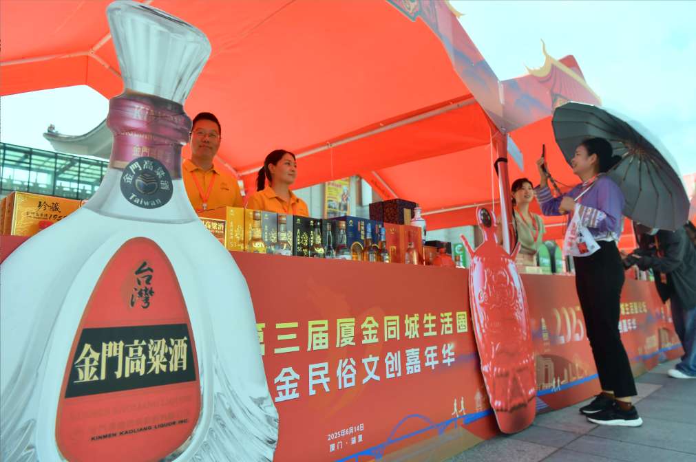 参观者在福建厦门举行的第三届厦金同城生活圈论坛暨厦金民俗文创嘉年华市集上选购商品。(图/中新社)