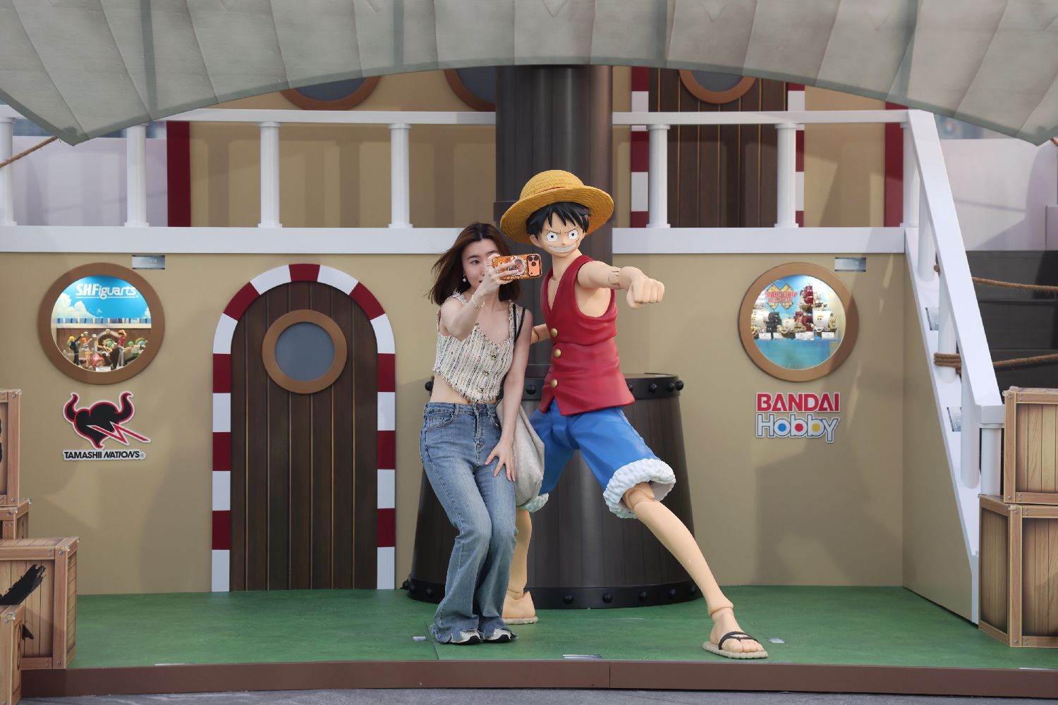 3月30日,市民游客在“海贼王”展区拍照打卡。3月27日起至5月5日,香港海港城与Bandai Namco Asia合作推出“Bandai Namco Asia Journey in Hong Kong”大型主题活动,汇集《机动战士高达》、《海贼王》、《塔麻歌子》、《超人》及《龙珠》五大经典动漫IP展区,于海运大厦不同位置重现多个经典场景,让市民游客能够近距离感受各大作品的独特魅力。(香港中通社)