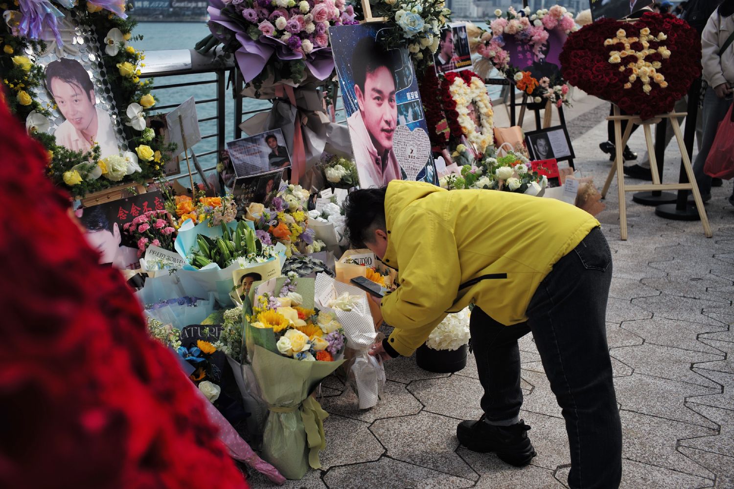 4月1日,来自世界各地的张国荣歌迷聚集在香港星光大道的张国荣手印前,献花悼念香港著名艺人张国荣逝世22周年。(香港中通社)