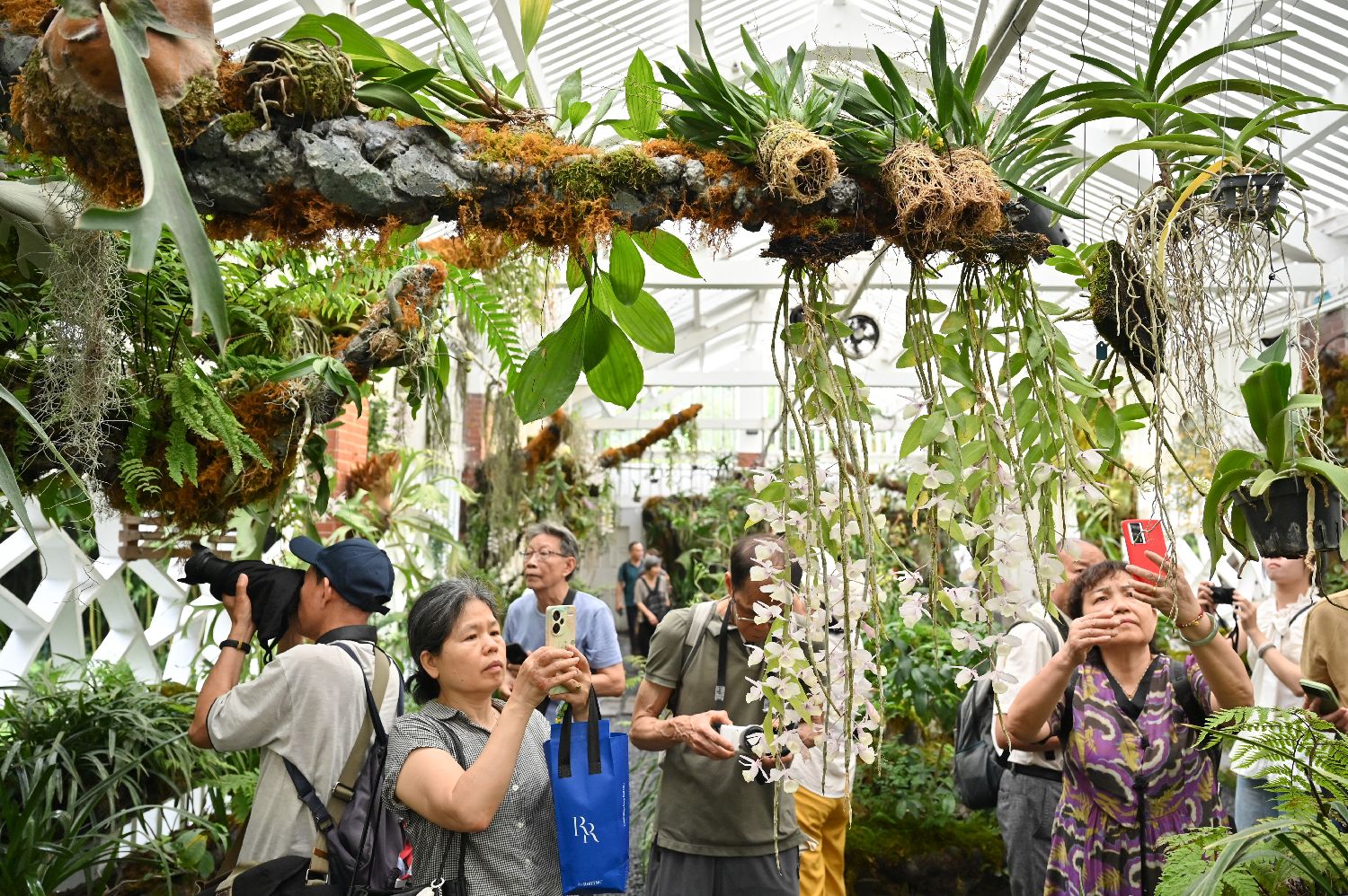 4月20日,广州市兰圃的生态馆“兰蕨秘境”吸引游客赏花拍照。(中新社)